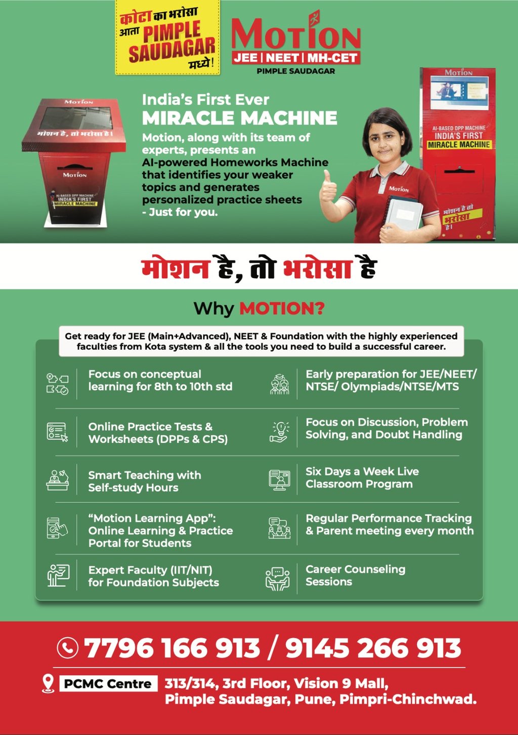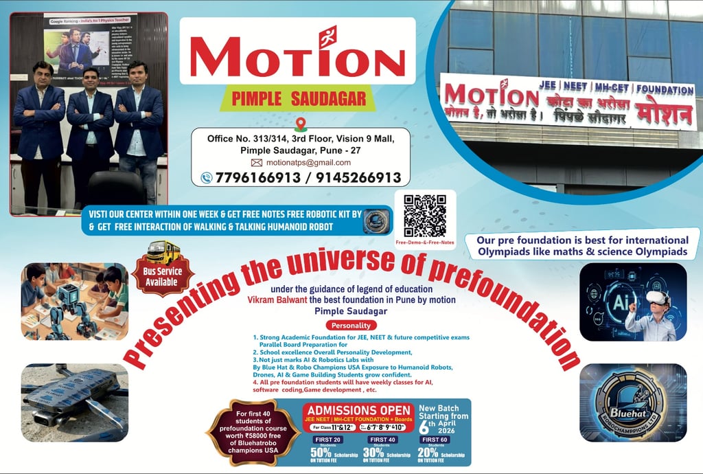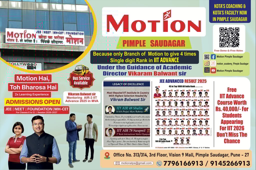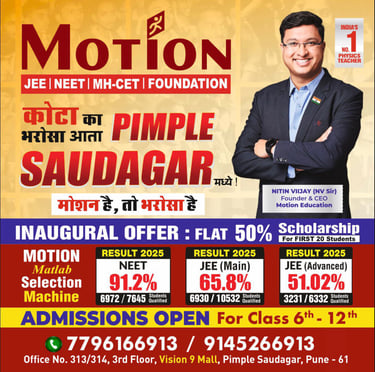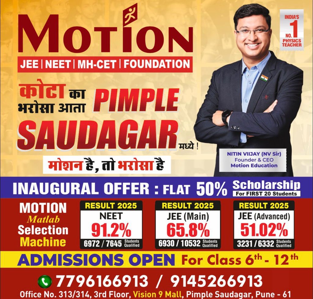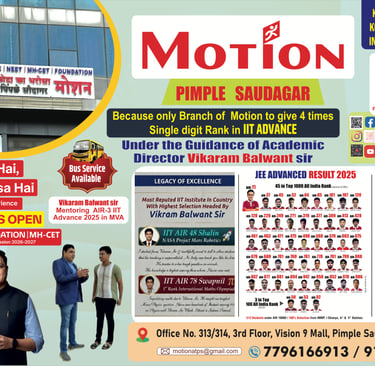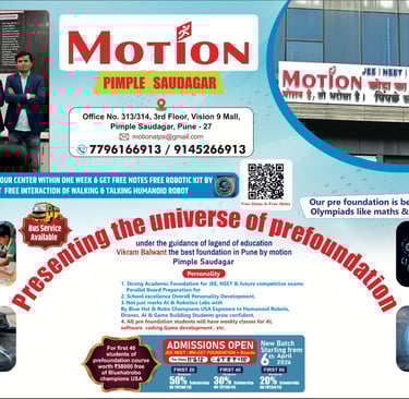 Reach out at Motion Pimple Saudagar for IIT JEE and NEET guidance.
